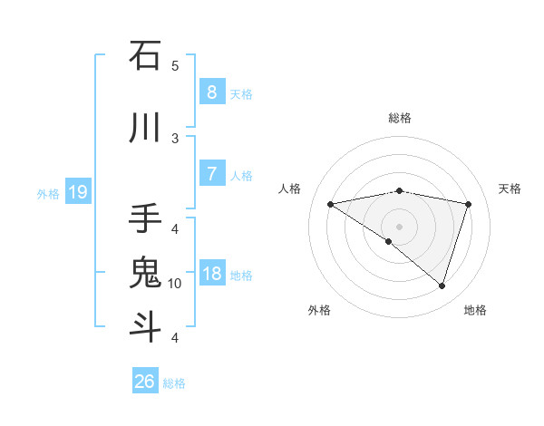 石川 手鬼斗さんを姓名の画数から五運を鑑定