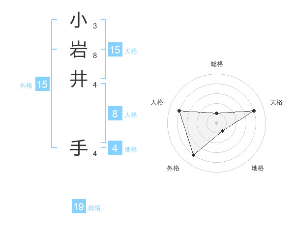 小岩井 手さんの天格は15画の4点!