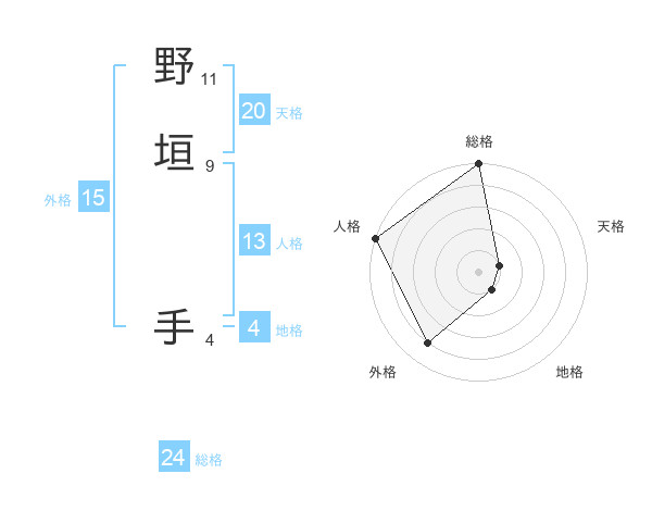 野垣 手さんの外格は15画の4点!