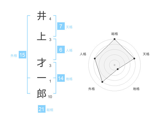 井上 才一郎さんを姓名の画数から五運を鑑定