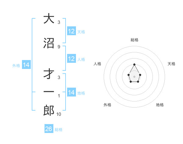 大沼 才一郎さんを姓名の画数から五運を鑑定