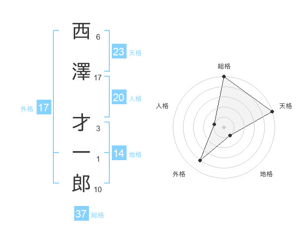 西澤 才一郎さんを姓名の画数から五運を鑑定