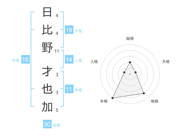 日比野 才也加さんの外格は16画の5点!
