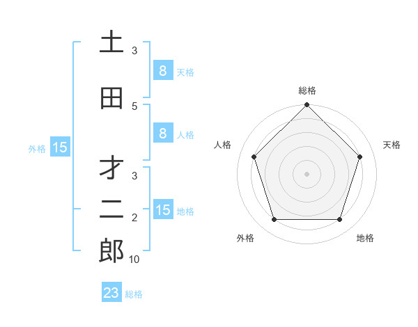 土田 才二郎さんを姓名の画数から五運を鑑定