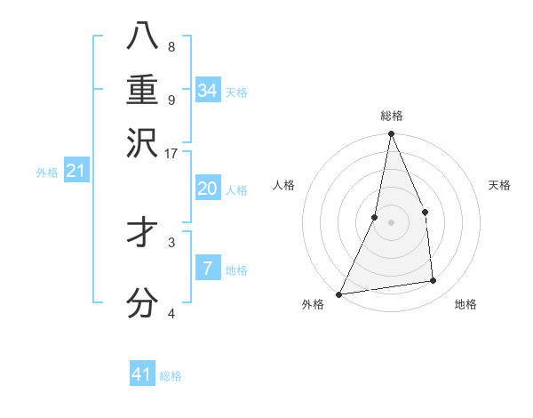 八重沢 才分さんの総格は41画の5点!
