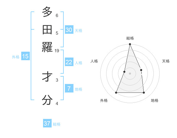 多田羅 才分さんの総格は37画の5点!