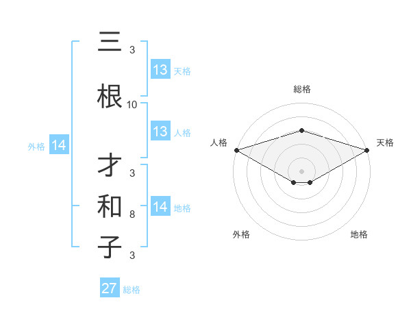 三根 才和子さんの天格は13画の5点!