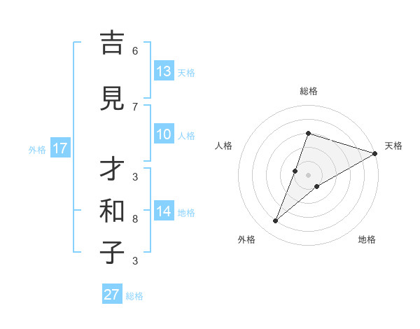 吉見 才和子さんの天格は13画の5点!