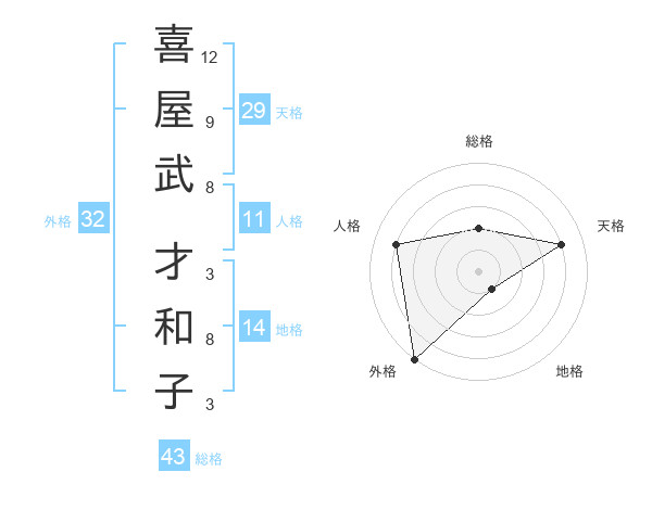 喜屋武 才和子さんを姓名の画数から五運を鑑定