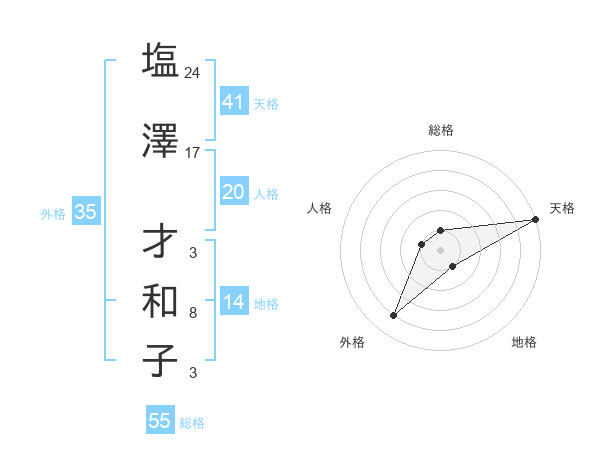塩澤 才和子さんを姓名の画数から五運を鑑定
