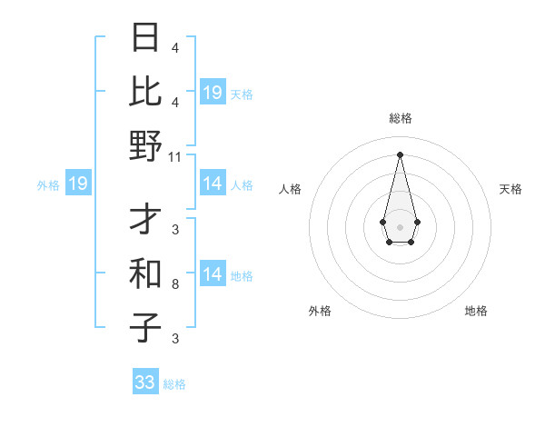 日比野 才和子さんを姓名の画数から五運を鑑定