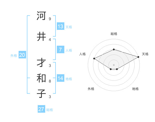 占い結果は姓名判断である以上、良い場合も悪い場合もありますが、決してお名前を誹謗中傷するものでなく、画数の自動計算によって得られたものです。また、本サイトの検索によって得られた鑑定結果で、第三者を誹謗中傷したり名誉を棄損するような行為を禁じます。