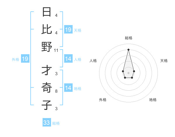 日比野 才奇子さんを姓名の画数から五運を鑑定