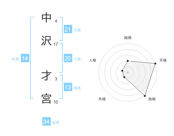 中沢 才宮さんを姓名の画数から五運を鑑定
