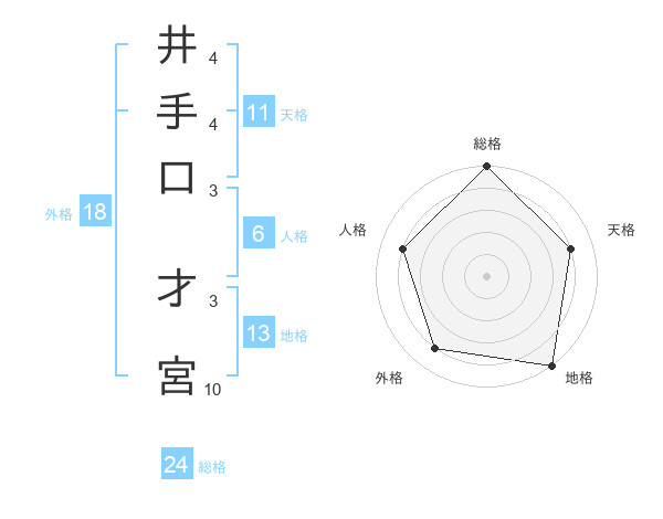 井手口 才宮さんを姓名の画数から五運を鑑定