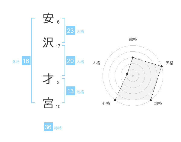 安沢 才宮さんを姓名の画数から五運を鑑定