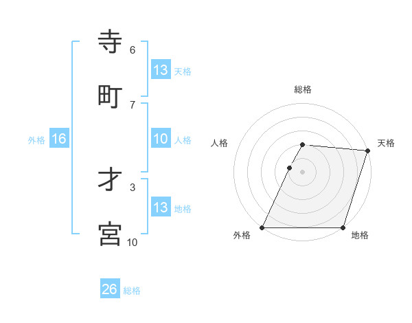 寺町 才宮さんの総格は26画の2点!