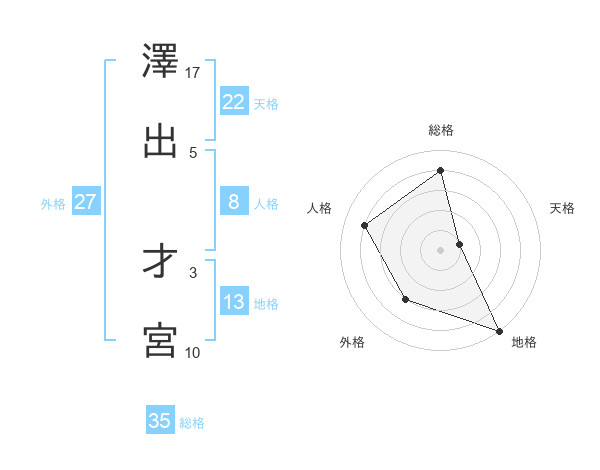澤出 才宮さんを姓名の画数から五運を鑑定