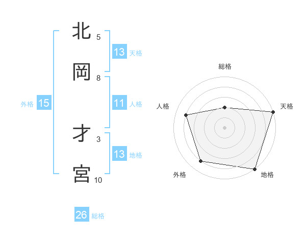 北岡 才宮さんを姓名の画数から五運を鑑定