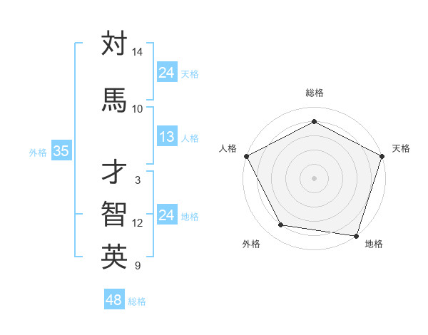 対馬 才智英さんの天格は24画の5点!