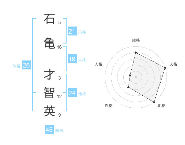 石亀 才智英さんを姓名の画数から五運を鑑定