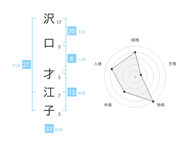 沢口 才江子さんを姓名の画数から五運を鑑定