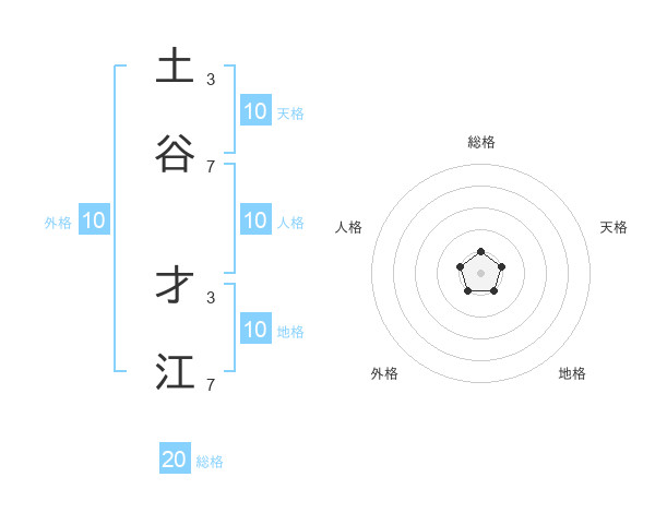 土谷 才江さんの総格は20画の1点!