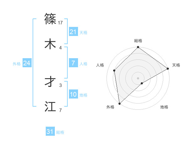 篠木 才江さんの天格は21画の5点!