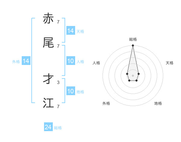 赤尾 才江さんの総格は24画の5点!