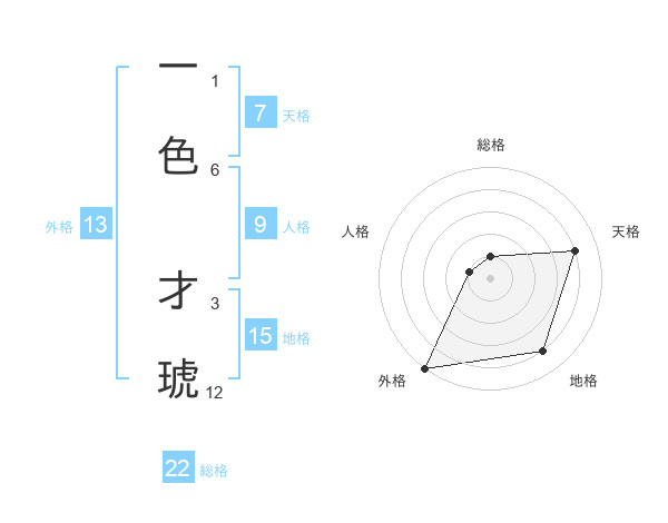 一色 才琥さんの総格は22画の1点!