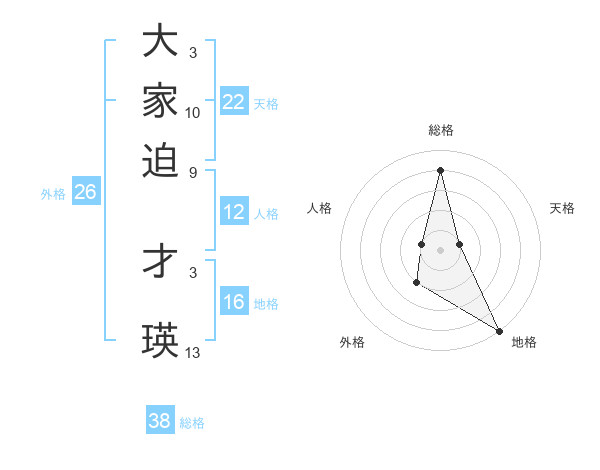 大家迫 才瑛さんの総格は38画の4点!