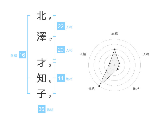 北澤 才知子さんを姓名の画数から五運を鑑定