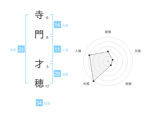 寺門 才穂さんの総格は34画の2点!