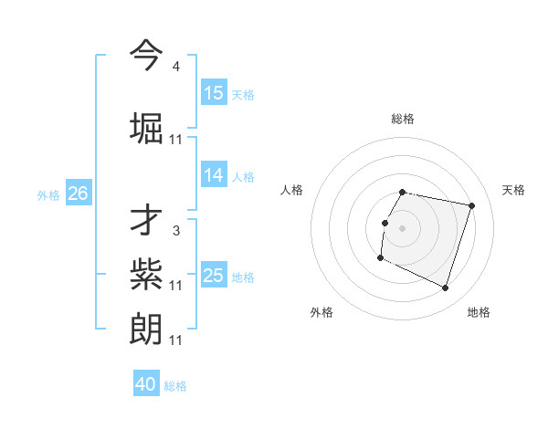 今堀 才紫朗さんを姓名の画数から五運を鑑定