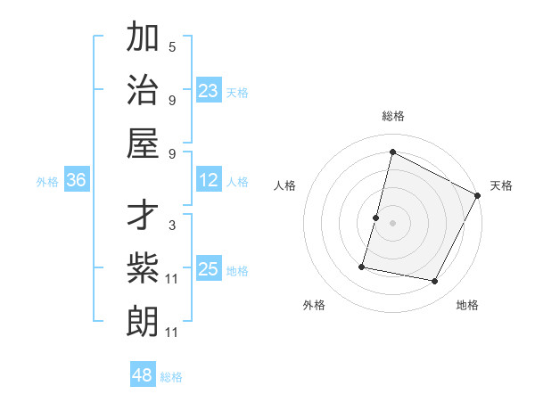加治屋 才紫朗さんの地格は25画の4点!