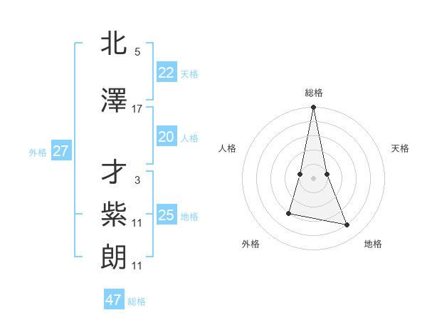 北澤 才紫朗さんの総格は47画の5点!