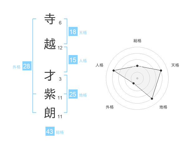 寺越 才紫朗さんの総格は43画の2点!