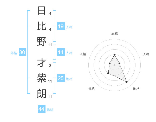 日比野 才紫朗さんを姓名の画数から五運を鑑定