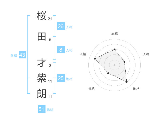 桜田 才紫朗さんを姓名の画数から五運を鑑定