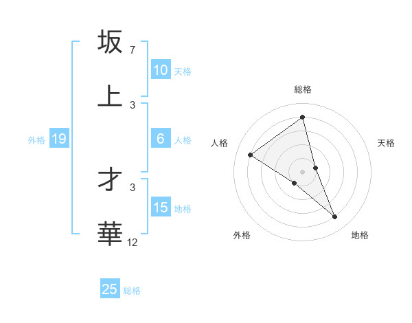 坂上 才華さんを姓名の画数から五運を鑑定