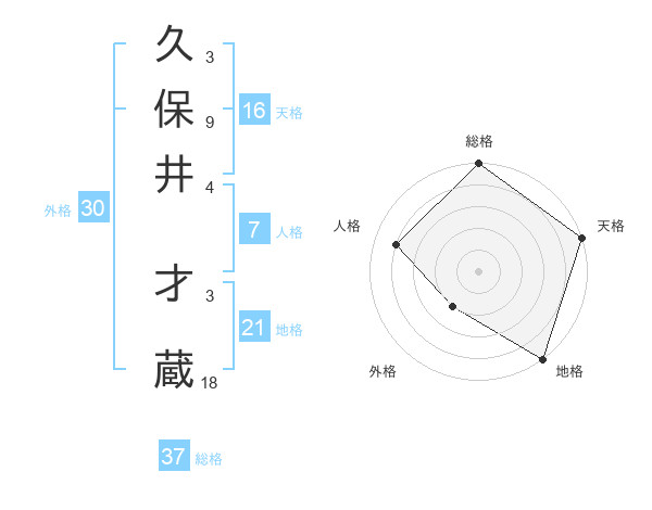 久保井 才蔵さんを姓名の画数から五運を鑑定
