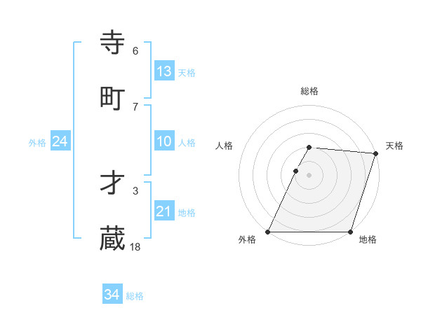 寺町 才蔵さんの総格は34画の2点!
