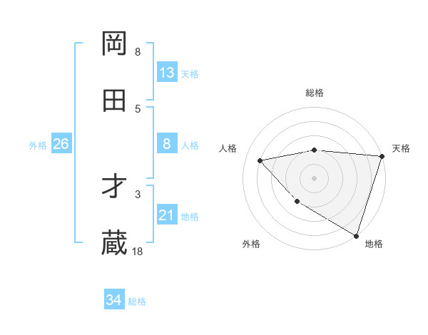 岡田 才蔵さんを姓名の画数から五運を鑑定
