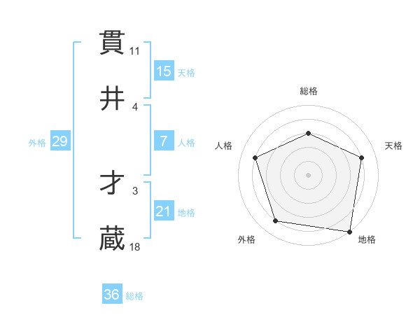 貫井 才蔵さんを姓名の画数から五運を鑑定