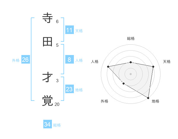 寺田 才覚さんを姓名の画数から五運を鑑定