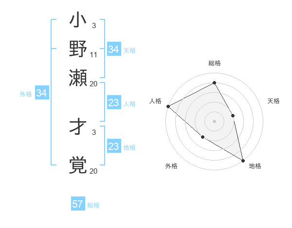 小野瀬 才覚さんを姓名の画数から五運を鑑定