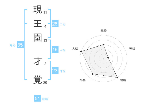 現王園 才覚さんを姓名の画数から五運を鑑定