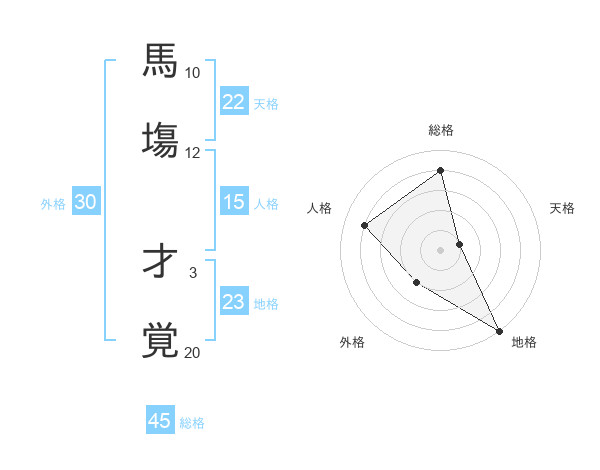 馬塲 才覚さんを姓名の画数から五運を鑑定