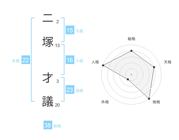 二塚 才議さんの外格は22画の1点!