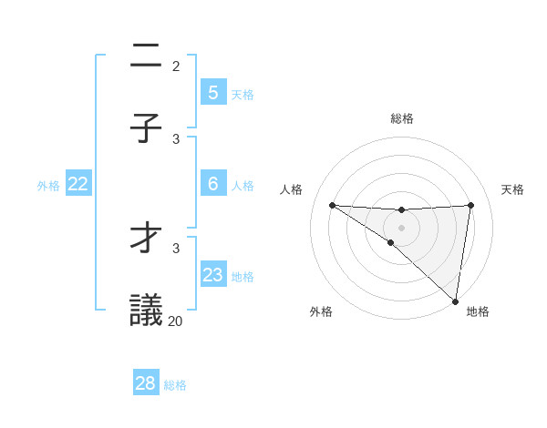 二子 才議さんの地格は23画の5点!